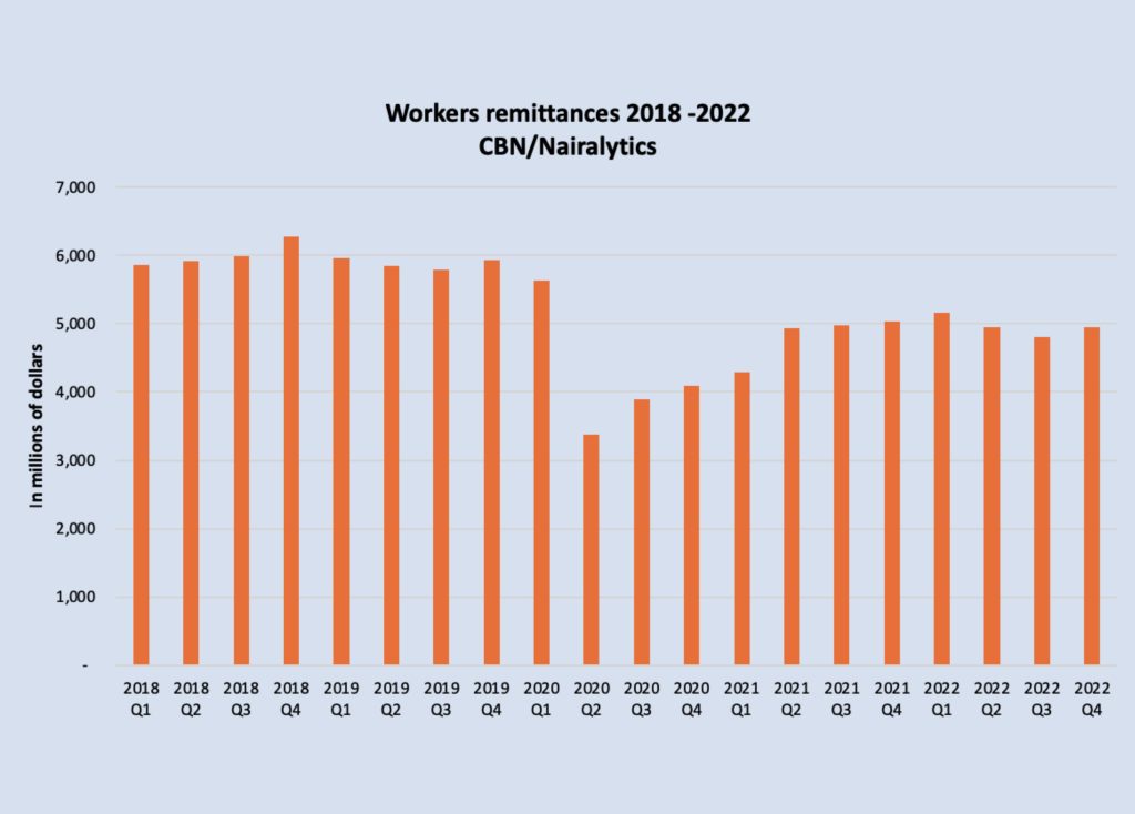 Nigerian workers living abroad have remitted a staggering $19.8 billion back home in 2022 a slight increase from $19.3 billion in 2021.